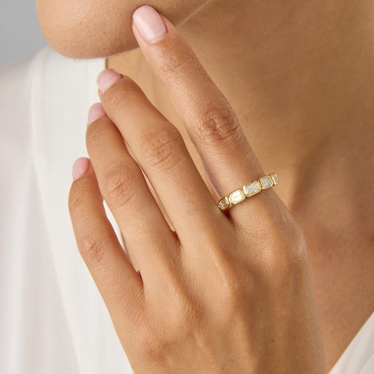 18KY Three Row Emerald Cut Diamond Band