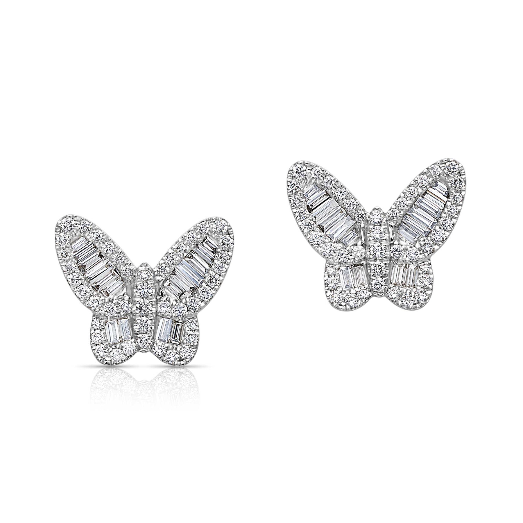 Beautiful and elegant, our butterfly studs are a great addition to any outfit. With their unique shape and delicate look, these 14K Yellow Gold stud earrings will make you feel like you’re in the spotlight. The baguette diamonds create a beautiful sparkle at every angle that is sure to turn heads.