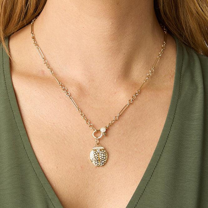18KY Emerald and Diamond Qu'Hier Que Demain Love Token with Diamond Bezel