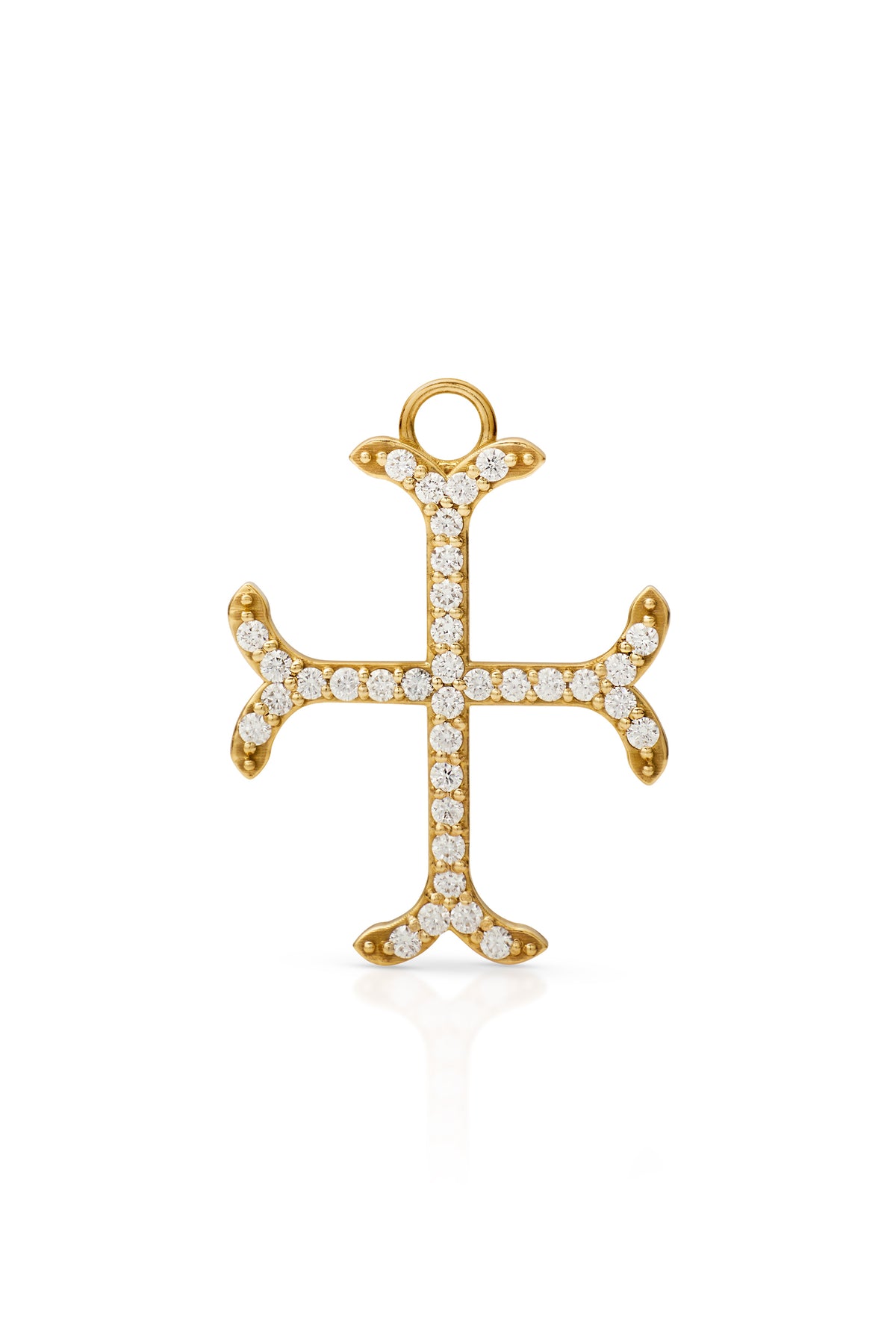 Say hello to our striking 18K yellow gold diamond Moline cross – a blend of faith and beauty in perfect balance. Created with careful attention, this stunning piece isn't just jewelry; it's a symbol of divine grace and spiritual connection. Each shimmering diamond adds a touch of elegance and meaning. Embrace this timeless treasure as it lights up your journey with faith and devotion.